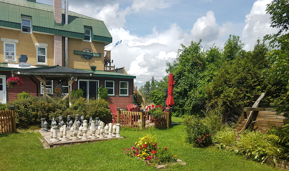 Le bar et ses bières belges importées ( Trappistes.... ) la terrasse et ses couchers de soleil le bord de l'eau et ses chaises de plage, le jardins et son spa et son jeu d'échecs, la salle de séjour et son foyer, la salle à manger, ses déjeuners et sa table d'hôte.